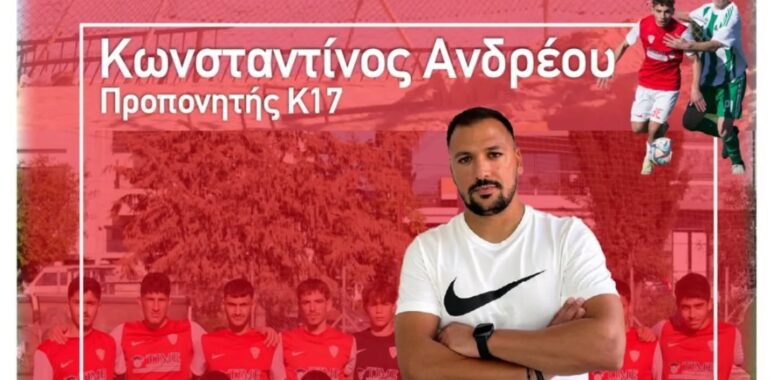 Ο κ. Ανδρέου αναλαμβάνει την τεχνική καθοδήγηση της ομάδας Κ17, ενισχύοντας το αγωνιστικό και εκπαιδευτικό μας πλάνο.