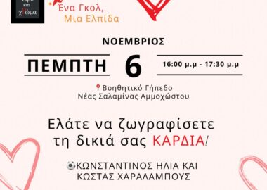 Το Σωματείο μας, με διαχρονική δράση και ευαισθησία σε θέματα κοινωνικής και περιβαλλοντικής ευθύνης, προχώρσε στην καθιέρωση του προγράμματος “Ένα γκολ, μια ελπίδα” με στόχο και όραμα την συνεισφορά σε συνανθρώπους μας που το έχουν ανάγκη.