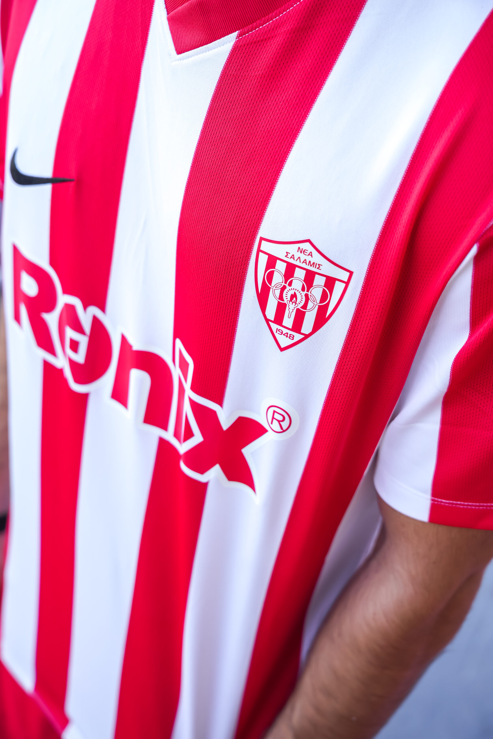 Το λογότυπο της RONIX βρίσκεται στο μπροστινό μέρος της φανέλας, ως Κύριος Χορηγός.